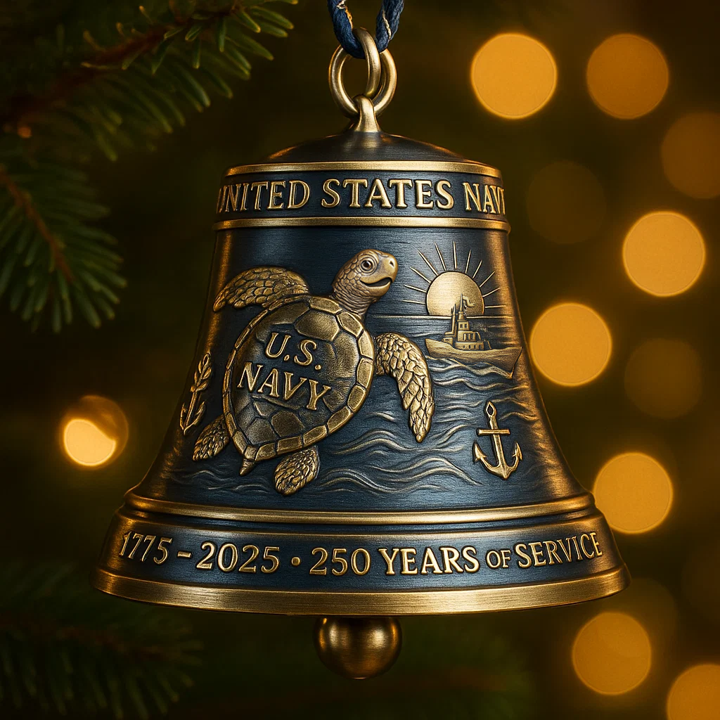 🎄Celebrate 250 years of courage, honor, and devotion with the U.S. Navy 250th Anniversary Bell Ornament (1775–2025) — a masterpiece that echoes with the proud legacy of America’s sailors.
